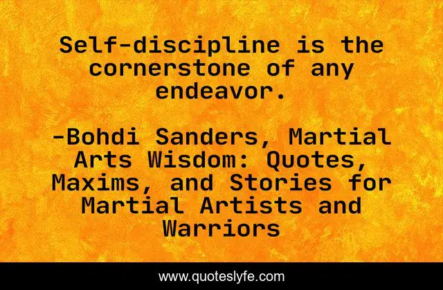 "Bohdi Sanders, Martial Arts Wisdom: Quotes, Maxims, and Stories for Martial Artists and Warriors Quotes." Quoteslyfe.com, 2025. Mon. 08 Dec. 2025. <https://www.quoteslyfe.com/quote/Self-discipline-is-the-cornerstone-of-any-247318>.