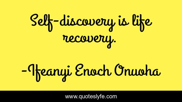This page presents the quote "Self-discovery is life recovery.". Author of this quote is Ifeanyi Enoch Onuoha. This quote is about life, coach, recovery, quote, self, motivation, wisdom, ifeanyi-enoch-onuoha, mentor,.