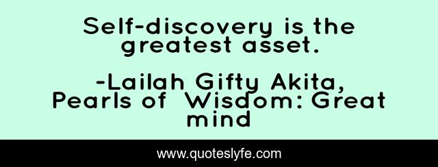 "Lailah Gifty Akita, Pearls of Wisdom: Great mind Quotes." Quoteslyfe.com, 2025. Mon. 08 Dec. 2025. <https://www.quoteslyfe.com/quote/Self-discovery-is-the-greatest-asset-85568>.