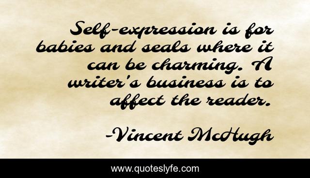 This page presents the quote "Self-expression is for babies and seals where it can be charming. A writer's business is to affect the reader.". Author of this quote is Vincent McHugh. This quote is about writers, writing,.