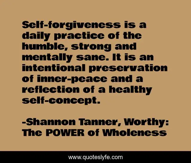 This page presents the quote "Self-forgiveness is a daily practice of the humble, strong and mentally sane. It is an intentional preservation of inner-peace and a reflection of a healthy self-concept.". Author of this quote is Shannon Tanner, Worthy: The POWER of Wholeness. This quote is about self-forgiveness, inner-peace,.