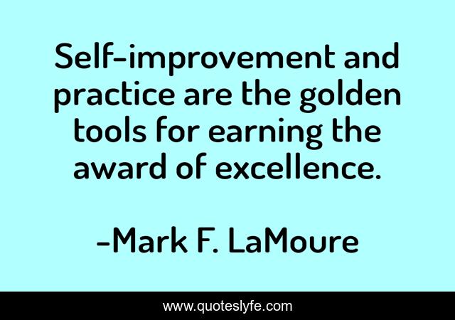 This page presents the quote "Self-improvement and practice are the golden tools for earning the award of excellence.". Author of this quote is Mark F. LaMoure. This quote is about motivation, success, excellent-people, excellence, self-improvement, inspirational, excellent, enthusiasm,.