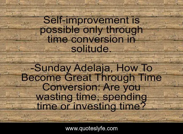 This page presents the quote "Self-improvement is possible only through time conversion in solitude.". Author of this quote is Sunday Adelaja, How To Become Great Through Time Conversion: Are you wasting time, spending time or investing time?. This quote is about solitude, life, conversion, productivity, wealth, improvement, greatness, waste, humanity,.