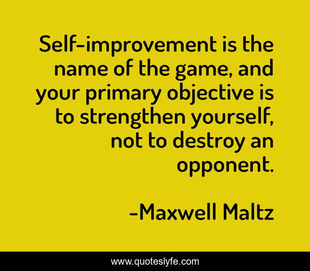 This page presents the quote "Self-improvement is the name of the game, and your primary objective is to strengthen yourself, not to destroy an opponent.". Author of this quote is Maxwell Maltz. .