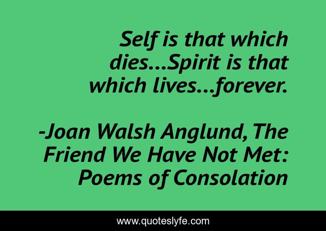 "Joan Walsh Anglund, The Friend We Have Not Met: Poems of Consolation Quotes." Quoteslyfe.com, 2025. Sat. 06 Dec. 2025. <https://www.quoteslyfe.com/quote/Self-is-that-which-dies-Spirit-is-62907>.