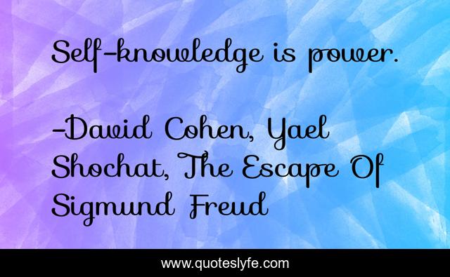 This page presents the quote "Self-knowledge is power.". Author of this quote is David Cohen, Yael Shochat, The Escape Of Sigmund Freud. This quote is about power, self-knowledge,.