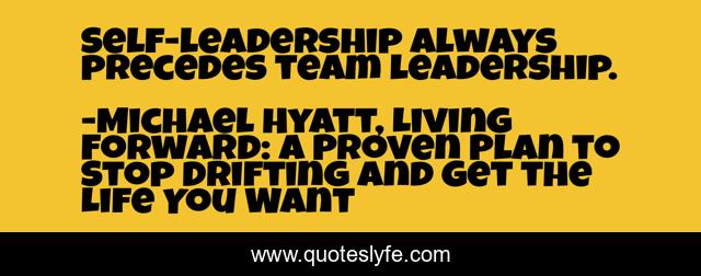 "Michael Hyatt, Living Forward: A Proven Plan to Stop Drifting and Get the Life You Want Quotes." Quoteslyfe.com, 2025. Tue. 09 Dec. 2025. <https://www.quoteslyfe.com/quote/Self-leadership-always-precedes-team-leadership-64723>.