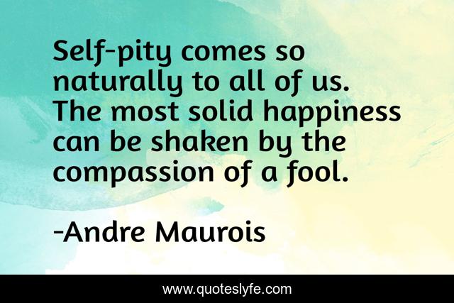 This page presents the quote "Self-pity comes so naturally to all of us. The most solid happiness can be shaken by the compassion of a fool.". Author of this quote is Andre Maurois. This quote is about compassion, fool, us,.