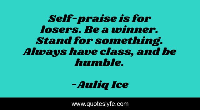 This page presents the quote "Self-praise is for losers. Be a winner. Stand for something. Always have class, and be humble.". Author of this quote is Auliq Ice. This quote is about self-appraisal, success,.