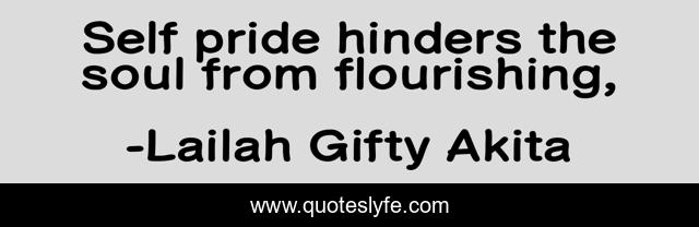 This page presents the quote "Self pride hinders the soul from flourishing, ". Author of this quote is Lailah Gifty Akita. This quote is about inspiring, pride, self-awareness, soul, wise-words,.
