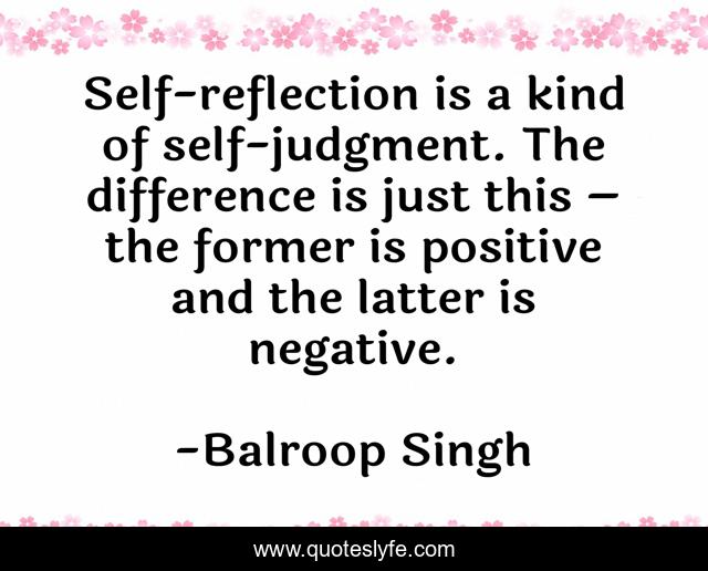 This page presents the quote "Self-reflection is a kind of self-judgment. The difference is just this – the former is positive and the latter is negative.". Author of this quote is Balroop Singh. This quote is about confidence, self-reflection, positive, negative, self-judgment, thoughts,.