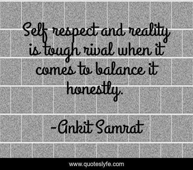 This page presents the quote "Self respect and reality is tough rival when it comes to balance it honestly.". Author of this quote is Ankit Samrat. This quote is about self-respect, honesty, human-nature, reality, rivals, ankit-samrat,.