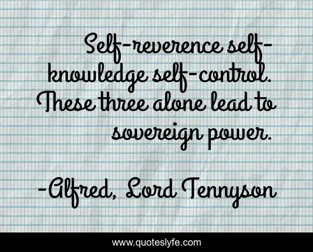 "Alfred, Lord Tennyson Quotes." Quoteslyfe.com, 2025. Sat. 06 Dec. 2025. <https://www.quoteslyfe.com/quote/Self-reverence-self-knowledge-self-control-These-275853>.