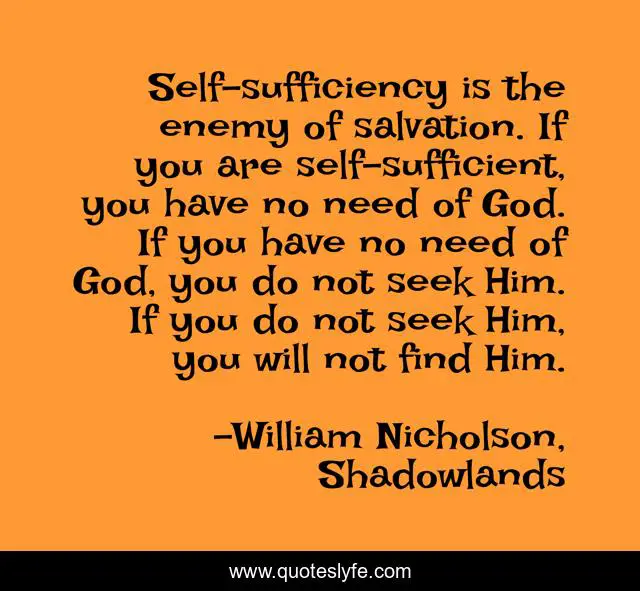 "William Nicholson, Shadowlands Quotes." Quoteslyfe.com, 2025. Mon. 08 Dec. 2025. <https://www.quoteslyfe.com/quote/Self-sufficiency-is-the-enemy-of-salvation-11141>.