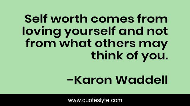 This page presents the quote "Self worth comes from loving yourself and not from what others may think of you.". Author of this quote is Karon Waddell. This quote is about loving-yourself, self-worth, self-love, self-improvement,.