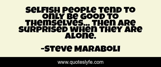 This page presents the quote "Selfish people tend to only be good to themselves... then are surprised when they are alone.". Author of this quote is Steve Maraboli. This quote is about relationships, selfishness,.