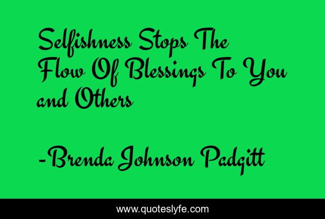 This page presents the quote "Selfishness Stops The Flow Of Blessings To You and Others". Author of this quote is Brenda Johnson Padgitt. This quote is about selfishness, blessing, flow, stops, others,.