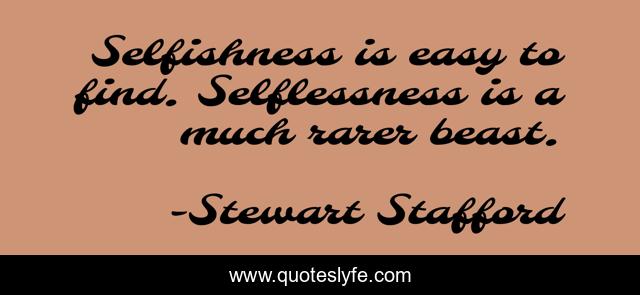 "Stewart Stafford Quotes." Quoteslyfe.com, 2025. Fri. 05 Dec. 2025. <https://www.quoteslyfe.com/quote/Selfishness-is-easy-to-find-Selflessness-is-136303>.