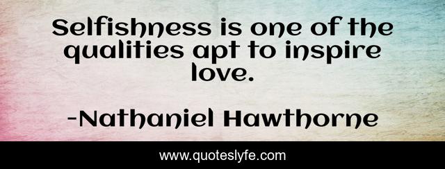This page presents the quote "Selfishness is one of the qualities apt to inspire love.". Author of this quote is Nathaniel Hawthorne. This quote is about love, affection,.
