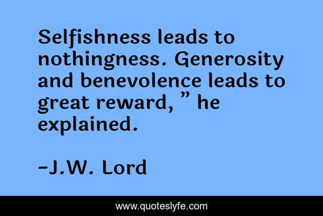 "J.W. Lord Quotes." Quoteslyfe.com, 2025. Fri. 05 Dec. 2025. <https://www.quoteslyfe.com/quote/Selfishness-leads-to-nothingness-Generosity-and-benevolence-240434>.