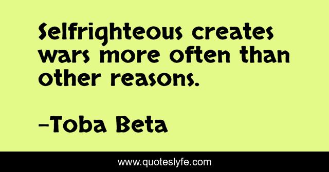 "Toba Beta Quotes." Quoteslyfe.com, 2025. Mon. 08 Dec. 2025. <https://www.quoteslyfe.com/quote/Selfrighteous-creates-wars-more-often-than-other-10622>.