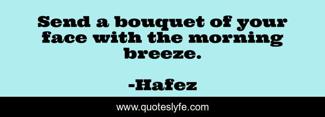 This page presents the quote "Send a bouquet of your face with the morning breeze.". Author of this quote is Hafez. This quote is about bouquet, breeze, face,.