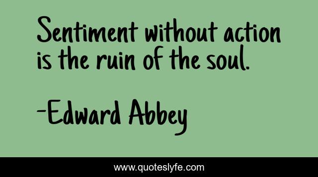 This page presents the quote "Sentiment without action is the ruin of the soul.". Author of this quote is Edward Abbey. This quote is about action, ruin, deeds, soul, sentiment,.