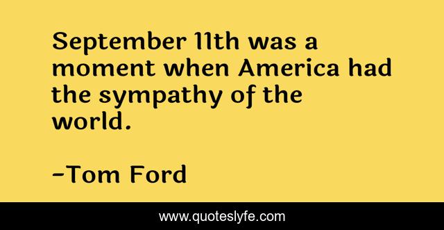 This page presents the quote "September 11th was a moment when America had the sympathy of the world.". Author of this quote is Tom Ford. This quote is about sympathy, america, world,.