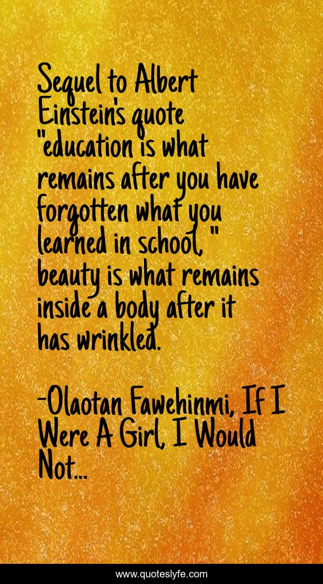 "Olaotan Fawehinmi, If I Were A Girl, I Would Not... Quotes." Quoteslyfe.com, 2025. Tue. 09 Dec. 2025. <https://www.quoteslyfe.com/quote/Sequel-to-Albert-Einstein-s-quote-education-208662>.