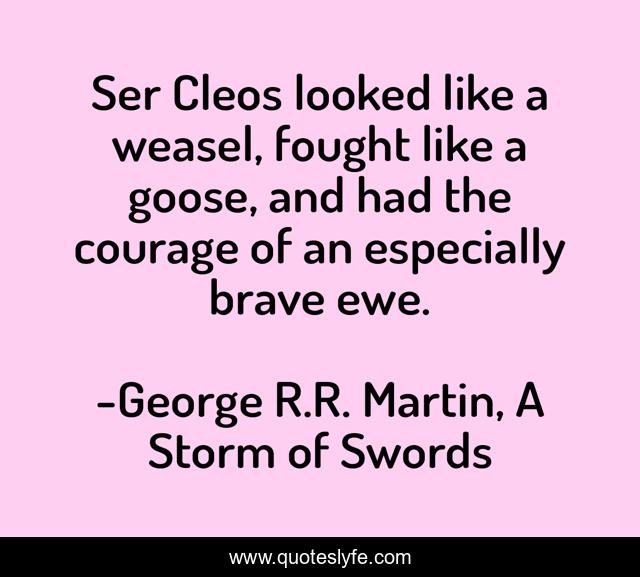 This page presents the quote "Ser Cleos looked like a weasel, fought like a goose, and had the courage of an especially brave ewe.". Author of this quote is George R.R. Martin, A Storm of Swords. .