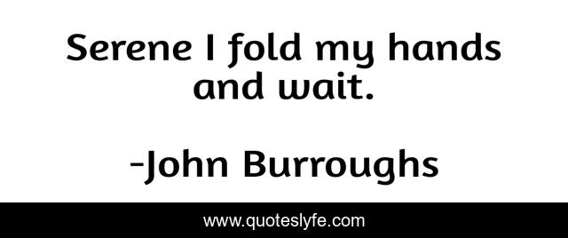 "John Burroughs Quotes." Quoteslyfe.com, 2025. Fri. 05 Dec. 2025. <https://www.quoteslyfe.com/quote/Serene-I-fold-my-hands-and-wait-263295>.