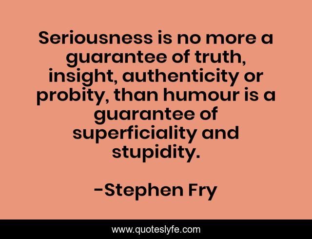 This page presents the quote "Seriousness is no more a guarantee of truth, insight, authenticity or probity, than humour is a guarantee of superficiality and stupidity.". Author of this quote is Stephen Fry. This quote is about bbc, stephen-fry, speech,.