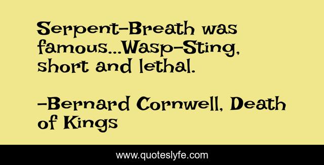 "Bernard Cornwell, Death of Kings Quotes." Quoteslyfe.com, 2025. Sat. 06 Dec. 2025. <https://www.quoteslyfe.com/quote/Serpent-Breath-was-famous-Wasp-Sting-short-248586>.