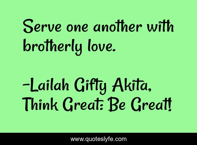 "Lailah Gifty Akita, Think Great: Be Great! Quotes." Quoteslyfe.com, 2025. Sat. 06 Dec. 2025. <https://www.quoteslyfe.com/quote/Serve-one-another-with-brotherly-love-85611>.