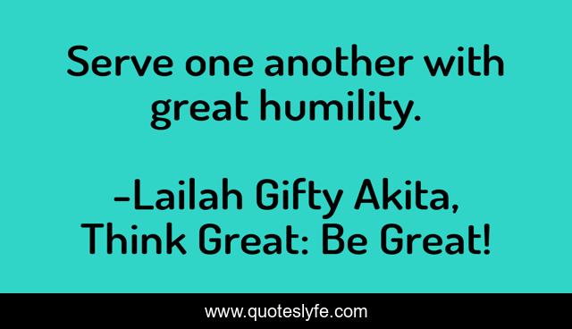 "Lailah Gifty Akita, Think Great: Be Great! Quotes." Quoteslyfe.com, 2025. Fri. 05 Dec. 2025. <https://www.quoteslyfe.com/quote/Serve-one-another-with-great-humility-85523>.