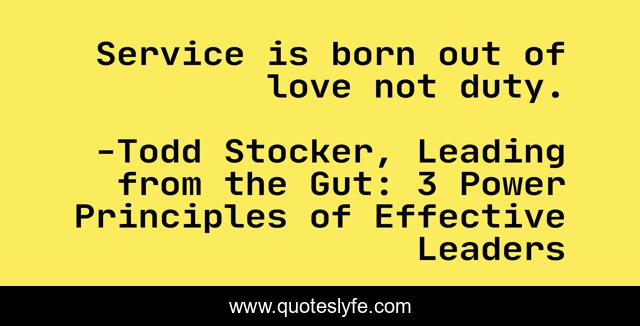 "Todd Stocker, Leading from the Gut: 3 Power Principles of Effective Leaders Quotes." Quoteslyfe.com, 2025. Sat. 06 Dec. 2025. <https://www.quoteslyfe.com/quote/Service-is-born-out-of-love-not-195951>.