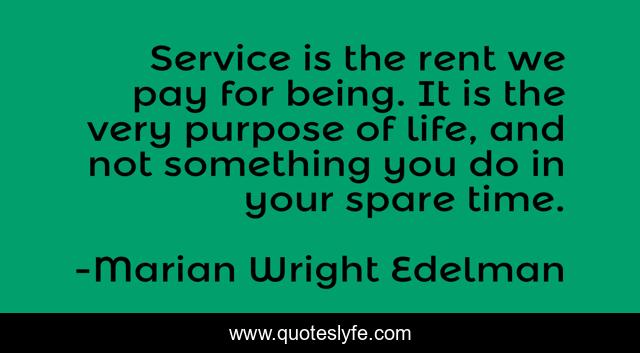 This page presents the quote "Service is the rent we pay for being. It is the very purpose of life, and not something you do in your spare time.". Author of this quote is Marian Wright Edelman. This quote is about enthusiasm, inspirational, service,.