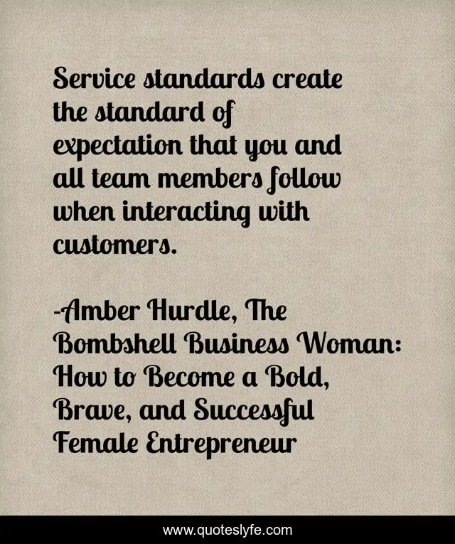 "Amber Hurdle, The Bombshell Business Woman: How to Become a Bold, Brave, and Successful Female Entrepreneur Quotes." Quoteslyfe.com, 2025. Fri. 05 Dec. 2025. <https://www.quoteslyfe.com/quote/Service-standards-create-the-standard-of-expectation-128227>.
