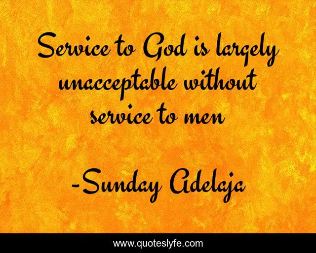 This page presents the quote "Service to God is largely unacceptable without service to men". Author of this quote is Sunday Adelaja. This quote is about love, people, money, principles, employment, worship, celebrating-people, destiny, service,.