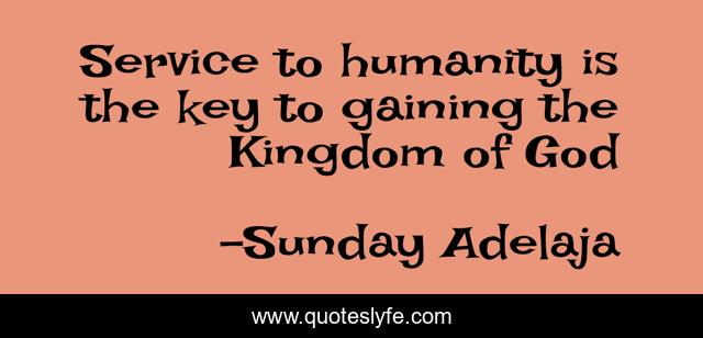 This page presents the quote "Service to humanity is the key to gaining the Kingdom of God". Author of this quote is Sunday Adelaja. This quote is about kingdom, life, love, destiny, service, people, money, god, work,.
