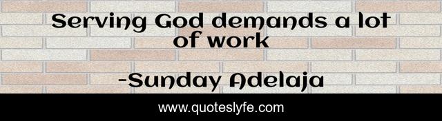 This page presents the quote "Serving God demands a lot of work". Author of this quote is Sunday Adelaja. This quote is about purpose, calling-fulfillment, life, goals,.