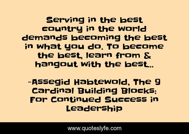 "Assegid Habtewold, The 9 Cardinal Building Blocks: For Continued Success in Leadership Quotes." Quoteslyfe.com, 2025. Sun. 07 Dec. 2025. <https://www.quoteslyfe.com/quote/Serving-in-the-best-country-in-the-195912>.