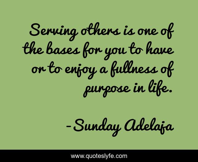 This page presents the quote "Serving others is one of the bases for you to have or to enjoy a fullness of purpose in life.". Author of this quote is Sunday Adelaja. This quote is about mountain, life, darkness, power, danger, enjoyment, god, people, ignorance,.
