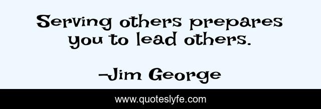 This page presents the quote "Serving others prepares you to lead others.". Author of this quote is Jim George. This quote is about faith, serving, love, prepare, lead, god, serve, leadership, servant-leader,.