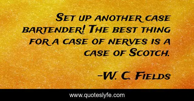 This page presents the quote "Set up another case bartender! The best thing for a case of nerves is a case of Scotch.". Author of this quote is W. C. Fields. This quote is about nerves, bartender, up,.