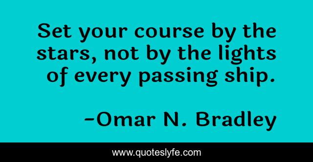 This page presents the quote "Set your course by the stars, not by the lights of every passing ship.". Author of this quote is Omar N. Bradley. This quote is about lights, ship, stars,.