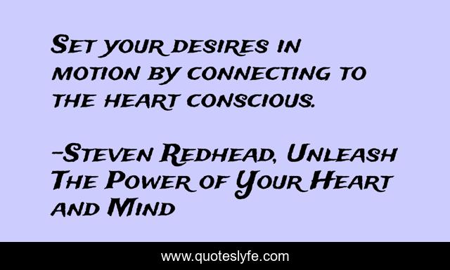 "Steven Redhead, Unleash The Power of Your Heart and Mind Quotes." Quoteslyfe.com, 2025. Fri. 05 Dec. 2025. <https://www.quoteslyfe.com/quote/Set-your-desires-in-motion-by-connecting-81196>.