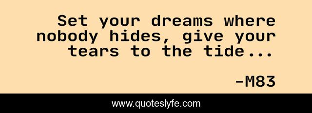 This page presents the quote "Set your dreams where nobody hides, give your tears to the tide...". Author of this quote is M83. This quote is about music, m83, lyrics,.
