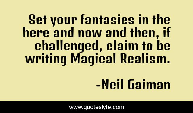 This page presents the quote "Set your fantasies in the here and now and then, if challenged, claim to be writing Magical Realism.". Author of this quote is Neil Gaiman. .