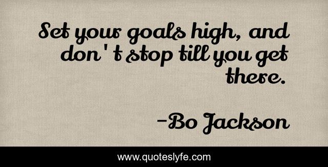 This page presents the quote "Set your goals high, and don't stop till you get there.". Author of this quote is Bo Jackson. This quote is about stop, goals,.